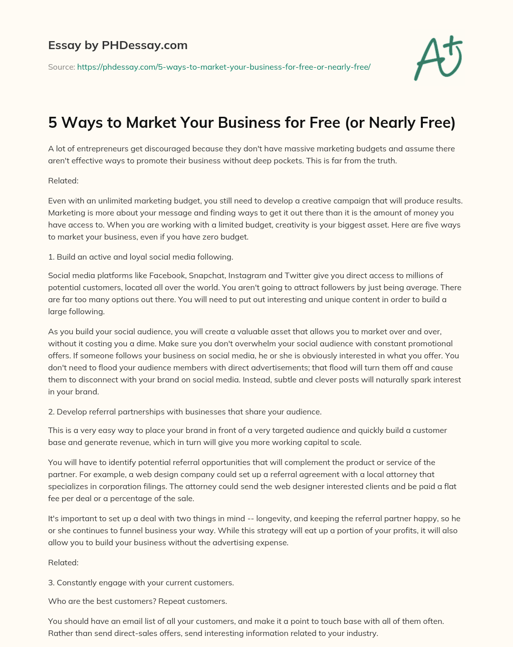 Order custom essay 5 Ways to Market Your Business for Free (or Nearly Free) with free plagiarism report