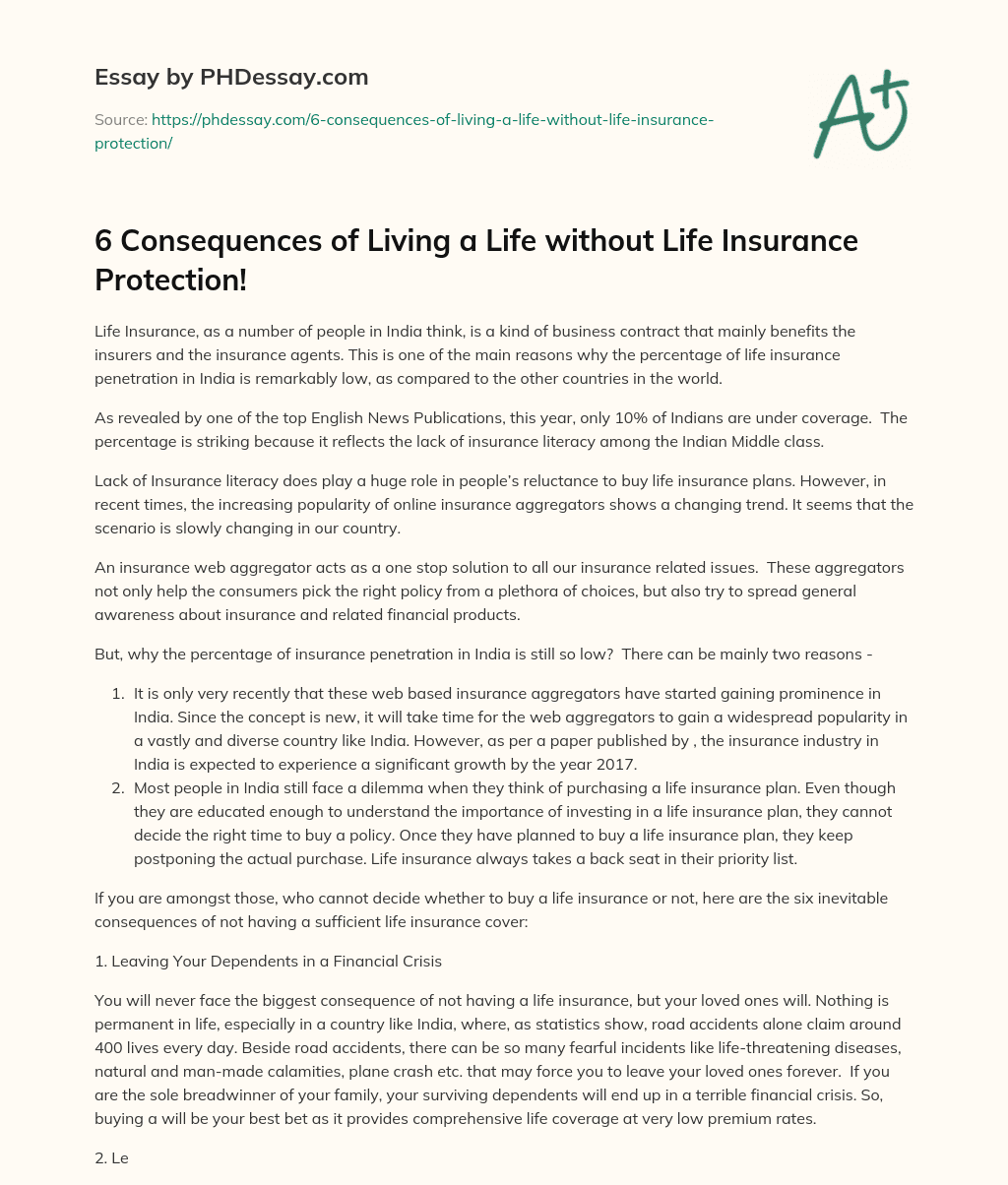 Order custom essay 6 Consequences of Living a Life without Life Insurance Protection! with free plagiarism report