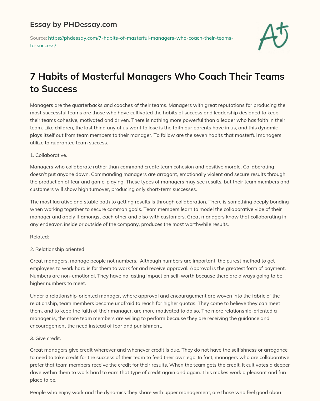 Order custom essay 7 Habits of Masterful Managers Who Coach Their Teams to Success with free plagiarism report