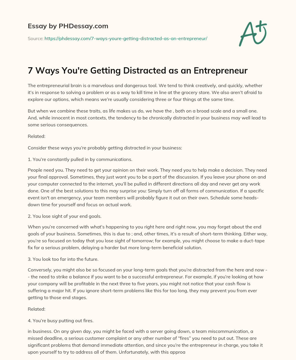 Order custom essay 7 Ways You’re Getting Distracted as an Entrepreneur with free plagiarism report