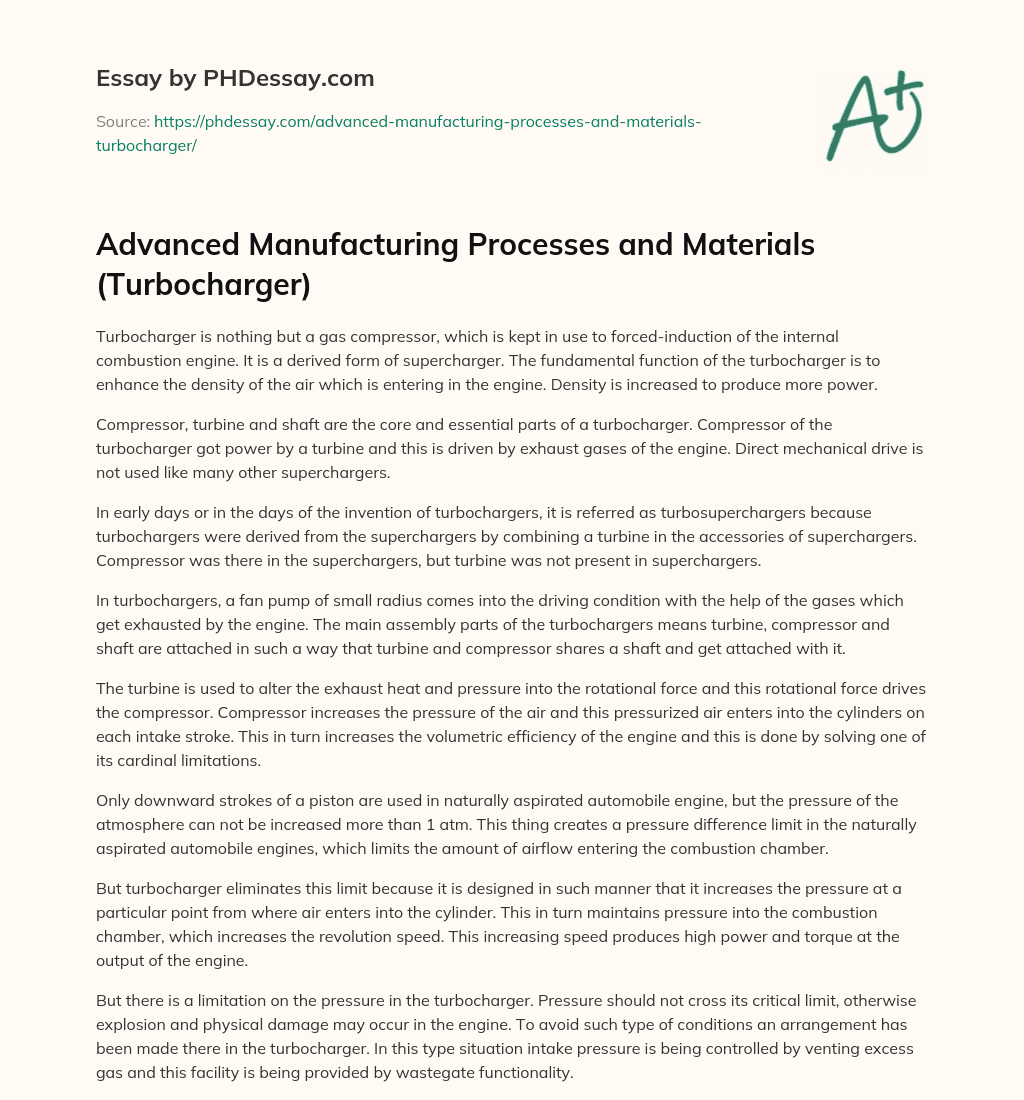 Order custom essay Advanced Manufacturing Processes and Materials (Turbocharger) with free plagiarism report