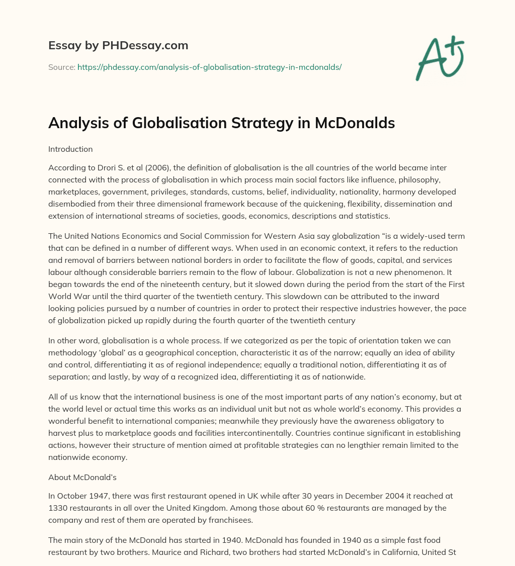 Order custom essay Analysis of Globalisation Strategy in McDonalds with free plagiarism report