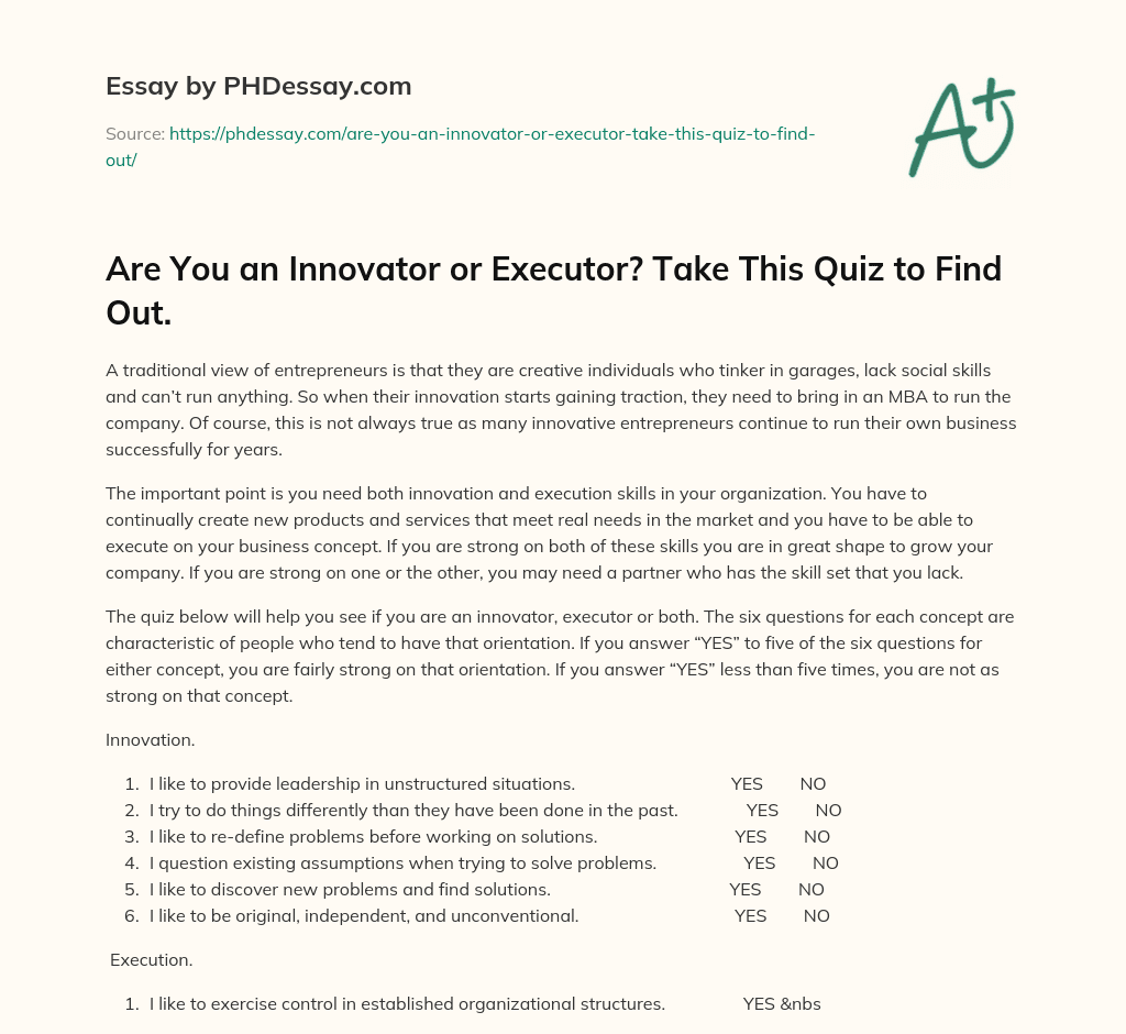Order custom essay Are You an Innovator or Executor? Take This Quiz to Find Out. with free plagiarism report
