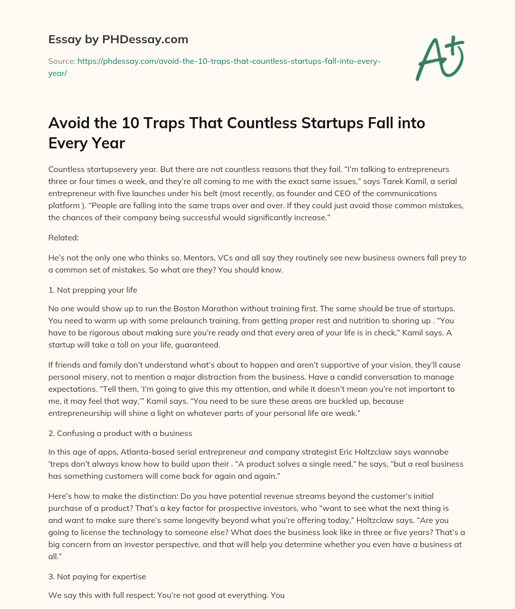 Order custom essay Avoid the 10 Traps That Countless Startups Fall into Every Year with free plagiarism report