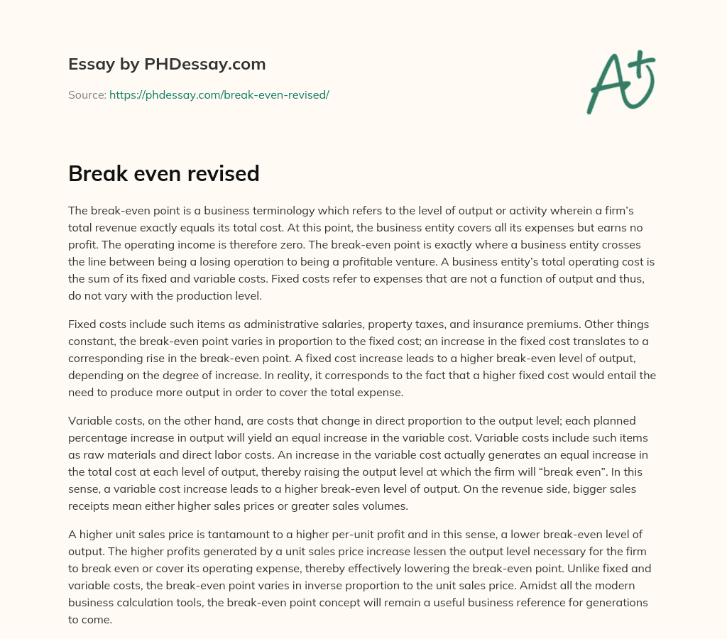 Order custom essay Break even revised with free plagiarism report