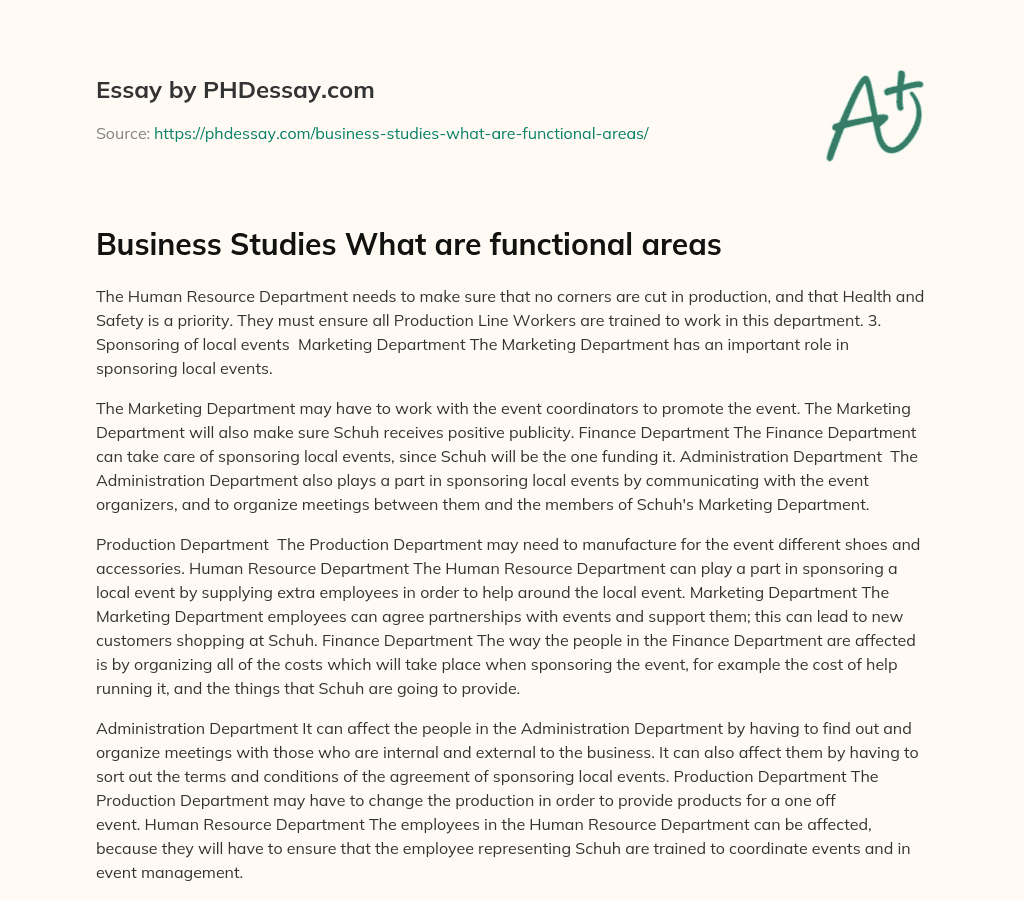 Order custom essay Business Studies What are functional areas with free plagiarism report