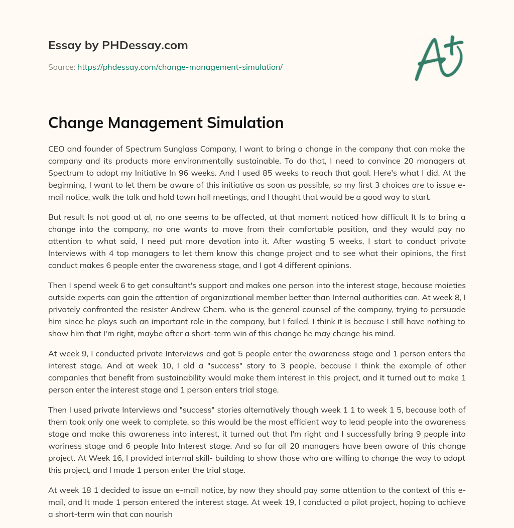 Change Management Simulation. (2018, Jan 26). Retrieved from https://phdessay.com/change-management-simulation/