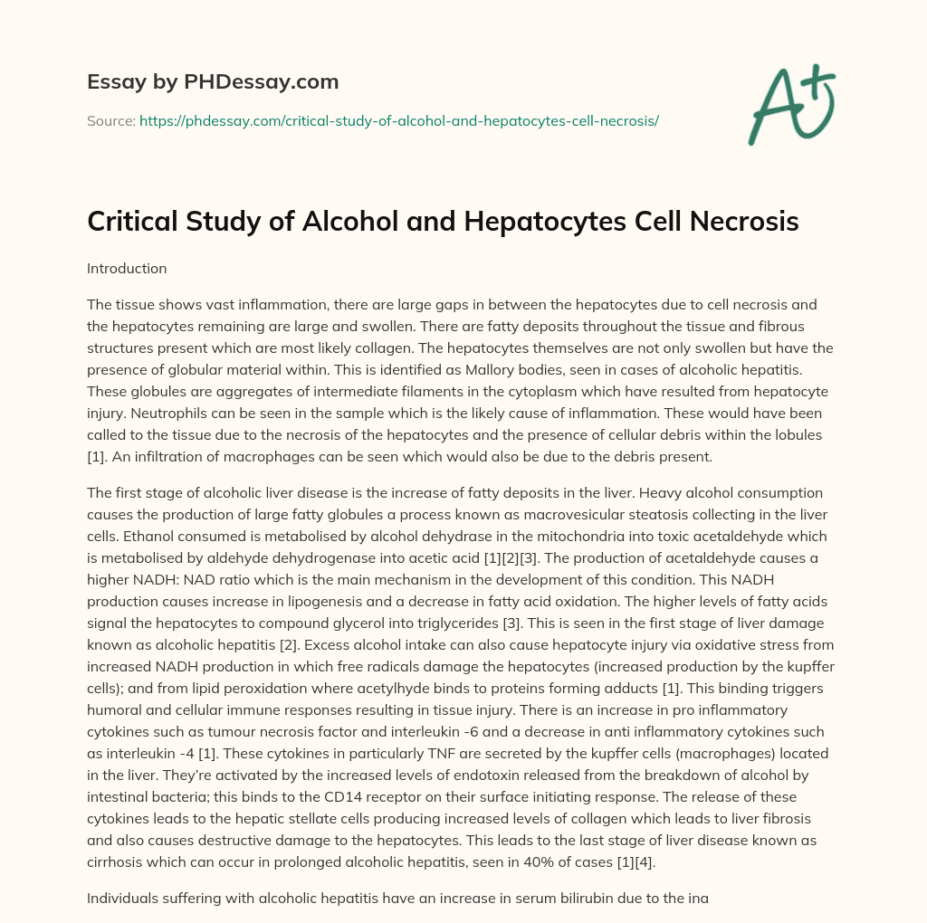 Critical Study of Alcohol and Hepatocytes Cell Necrosis. (2019, Mar 19). Retrieved from https://phdessay.com/critical-study-of-alcohol-and-hepatocytes-cell-necrosis/