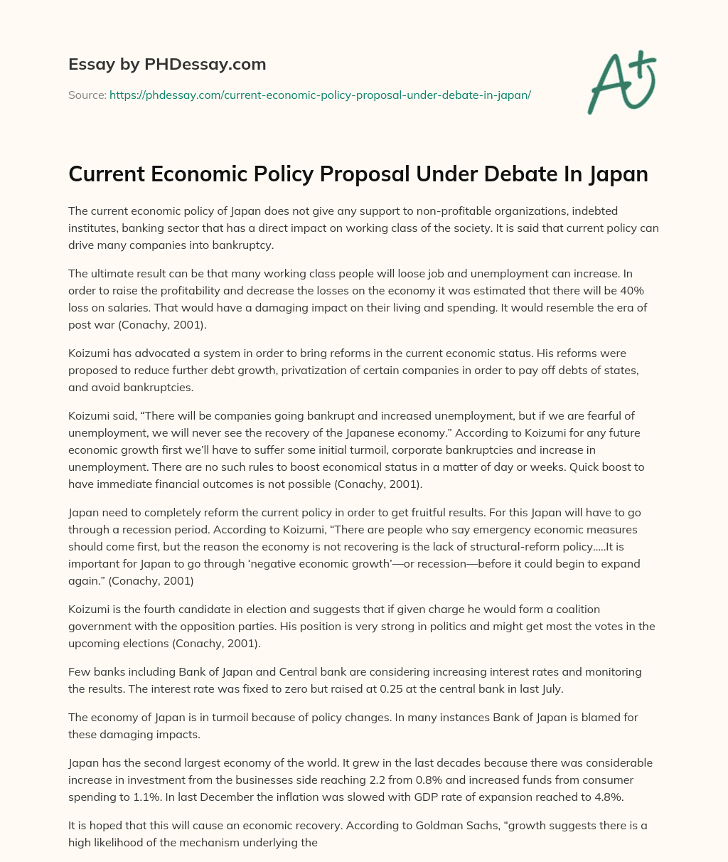 Order custom essay Current Economic Policy Proposal Under Debate In Japan with free plagiarism report
