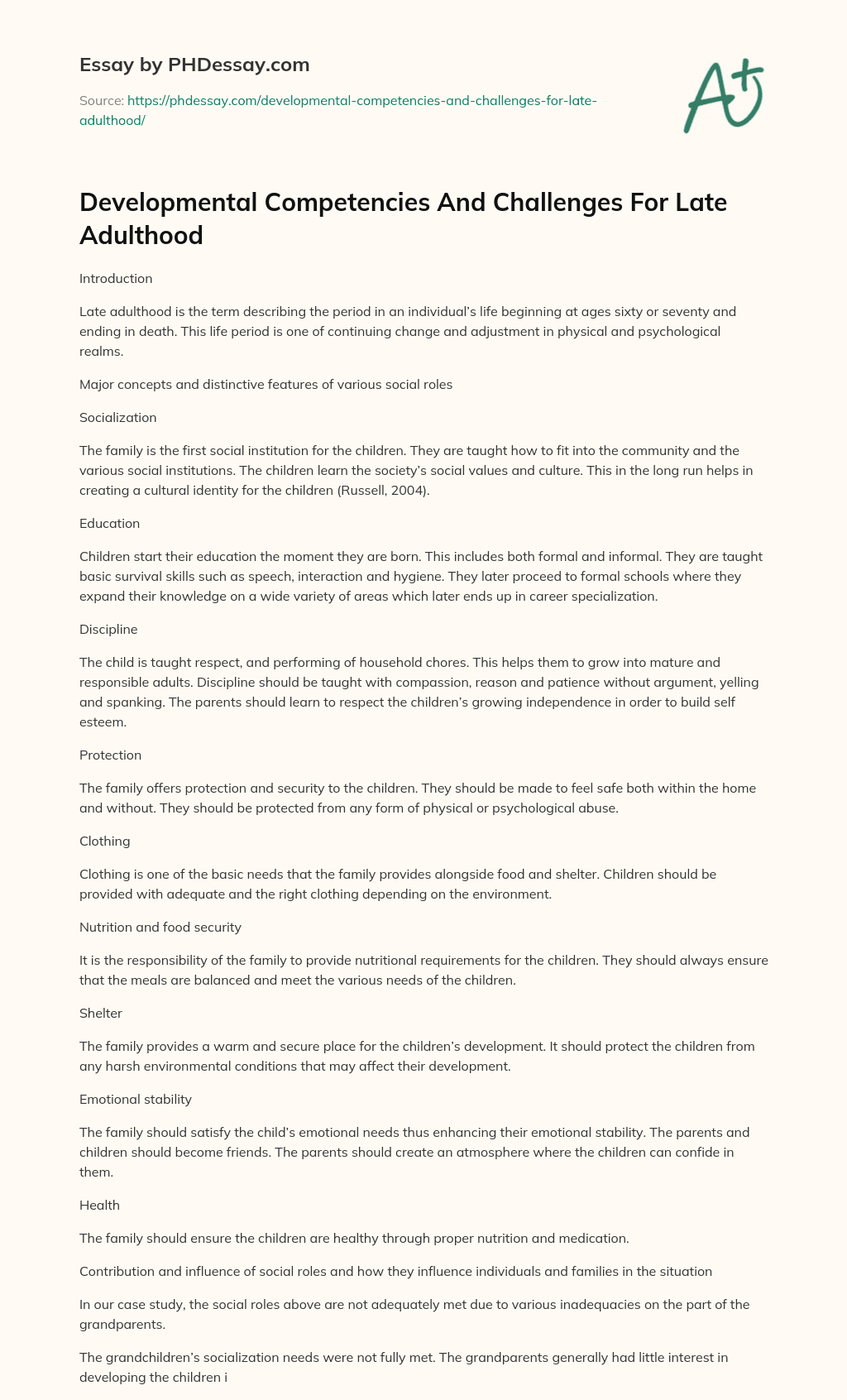 Developmental Competencies And Challenges For Late Adulthood. (2016, Aug 04). Retrieved from https://phdessay.com/developmental-competencies-and-challenges-for-late-adulthood/