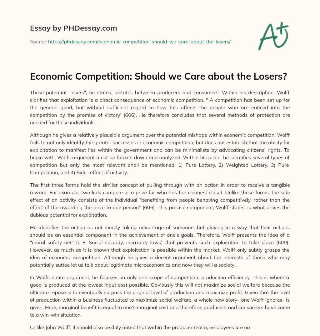 Order custom essay Economic Competition: Should we Care about the Losers? with free plagiarism report