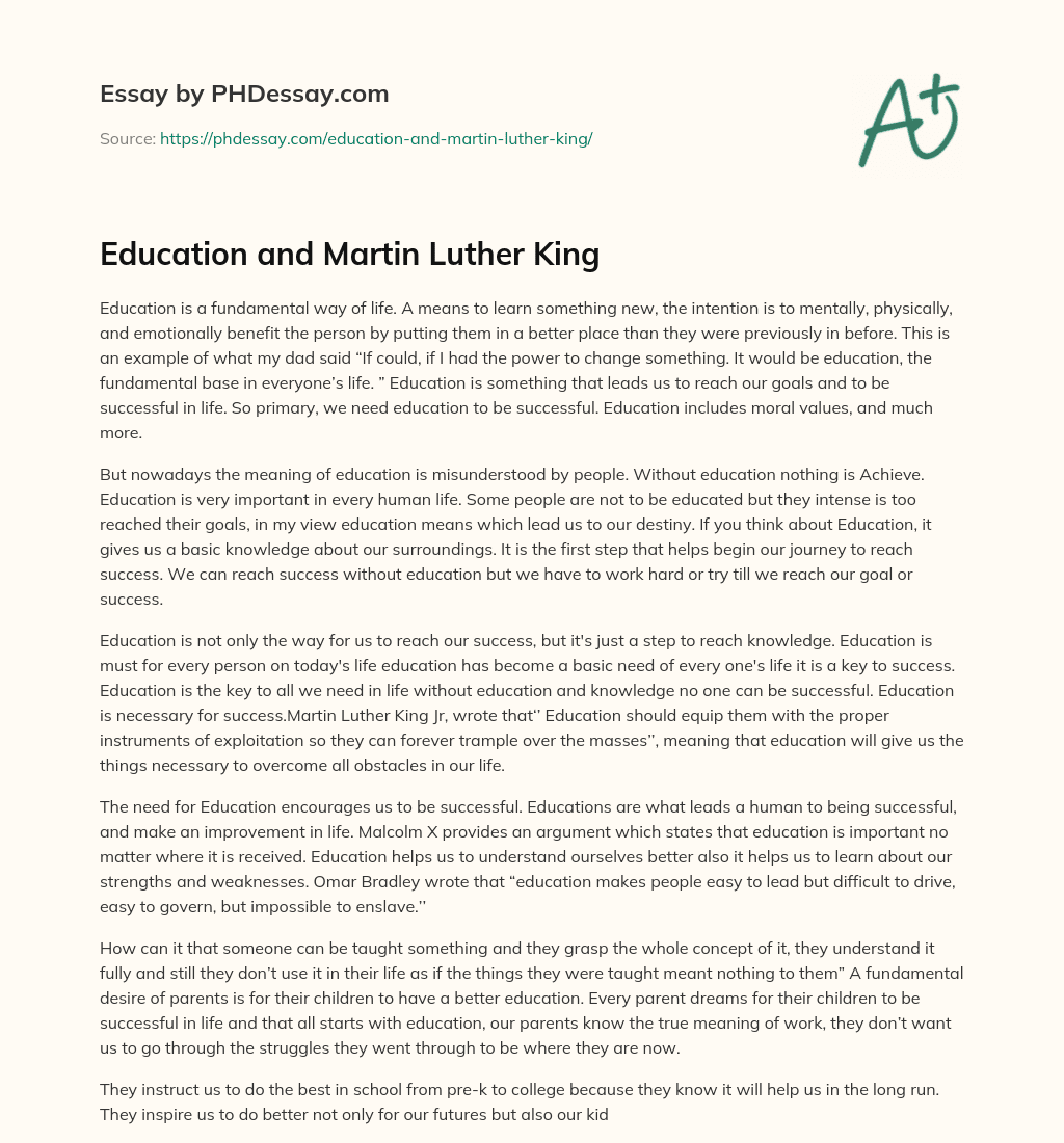 Order custom essay Education and Martin Luther King with free plagiarism report