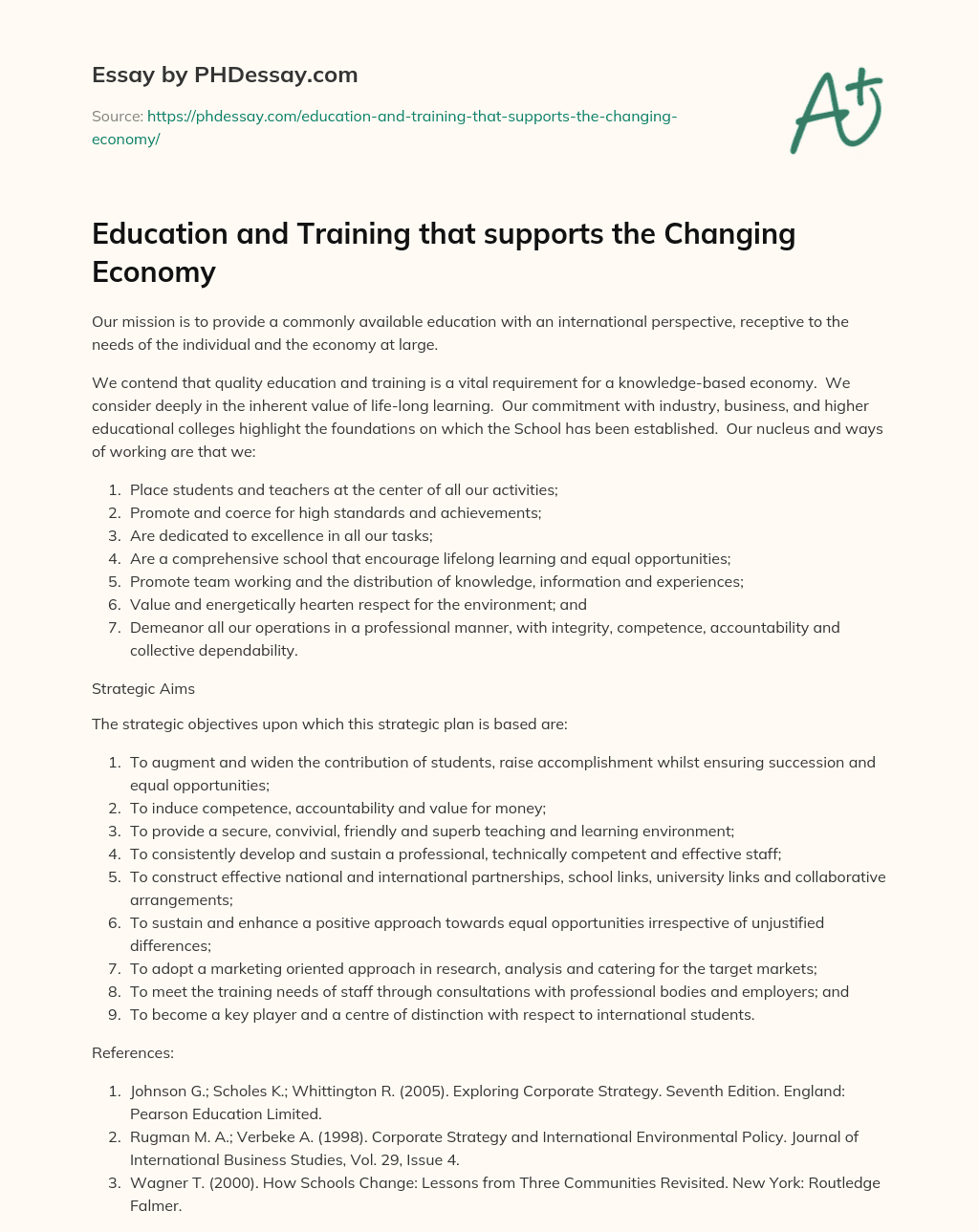 Order custom essay Education and Training that supports the Changing Economy with free plagiarism report