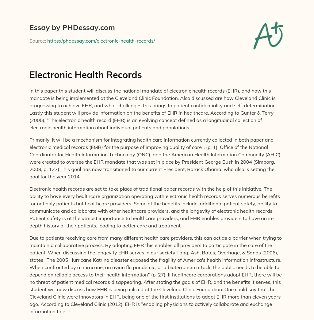Electronic Health Records. (2017, May 25). Retrieved from https://phdessay.com/electronic-health-records/