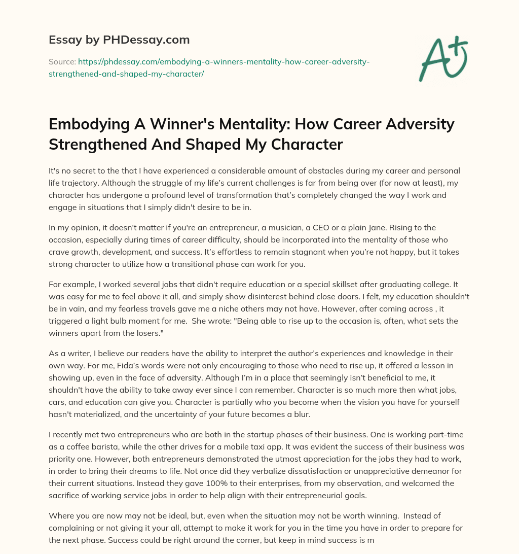 Order custom essay Embodying A Winner’s Mentality: How Career Adversity Strengthened And Shaped My Character with free plagiarism report