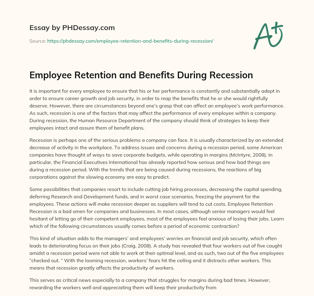 Order custom essay Employee Retention and Benefits During Recession with free plagiarism report