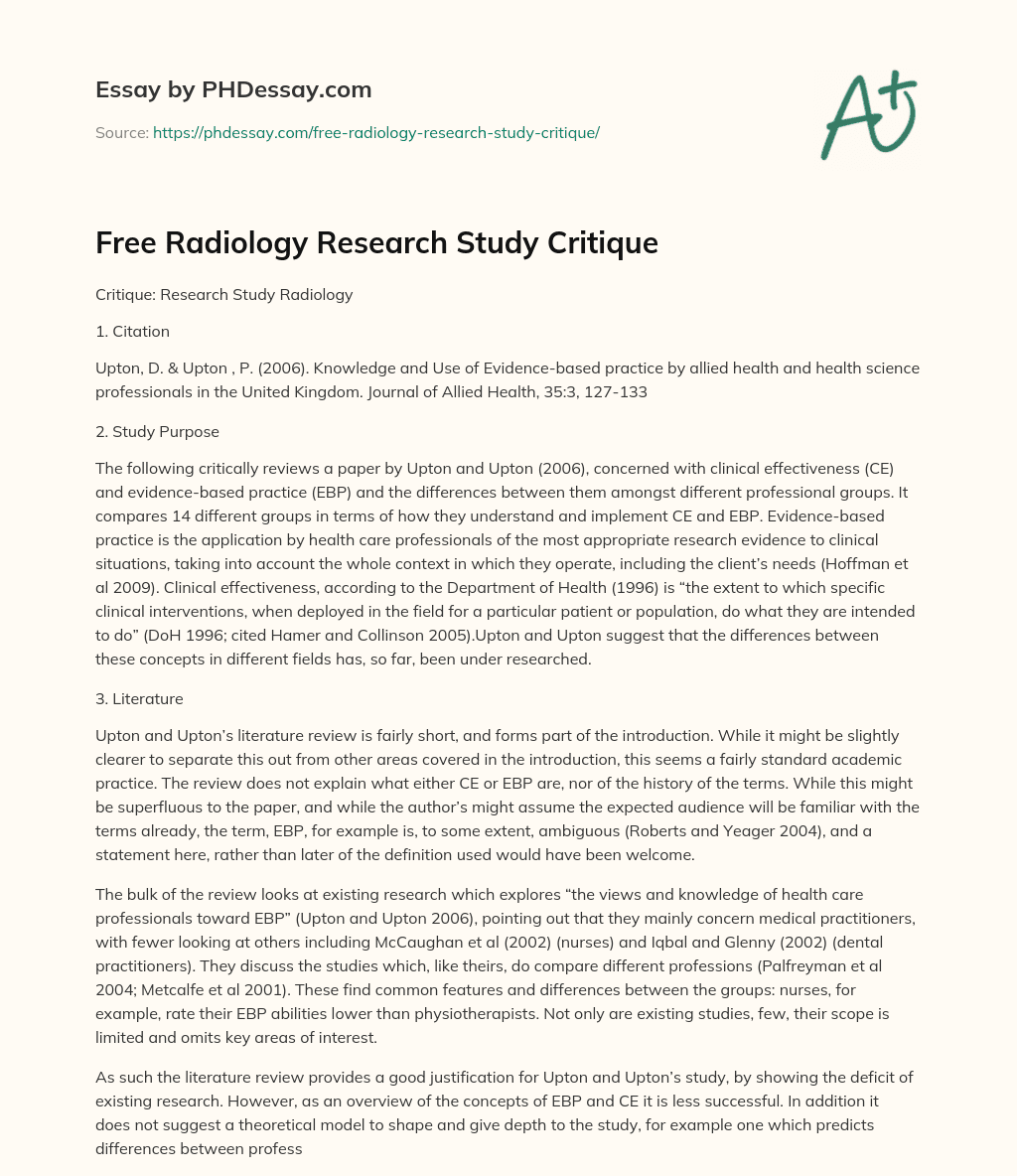 Order custom essay Free Radiology Research Study Critique with free plagiarism report
