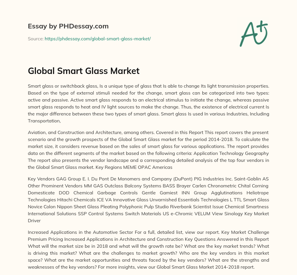 Order custom essay Global Smart Glass Market with free plagiarism report