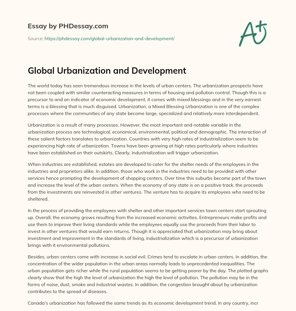 Order custom essay Global Urbanization and Development with free plagiarism report