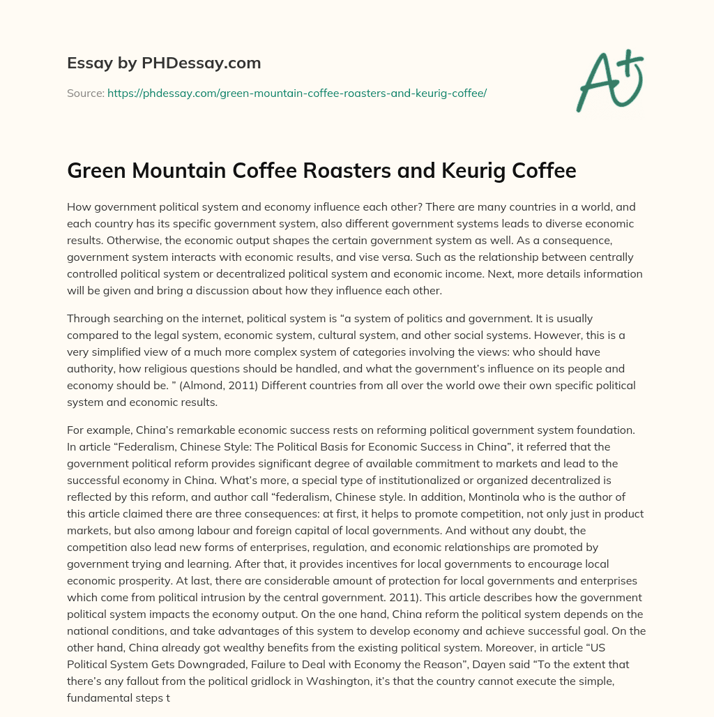Order custom essay Green Mountain Coffee Roasters and Keurig Coffee with free plagiarism report