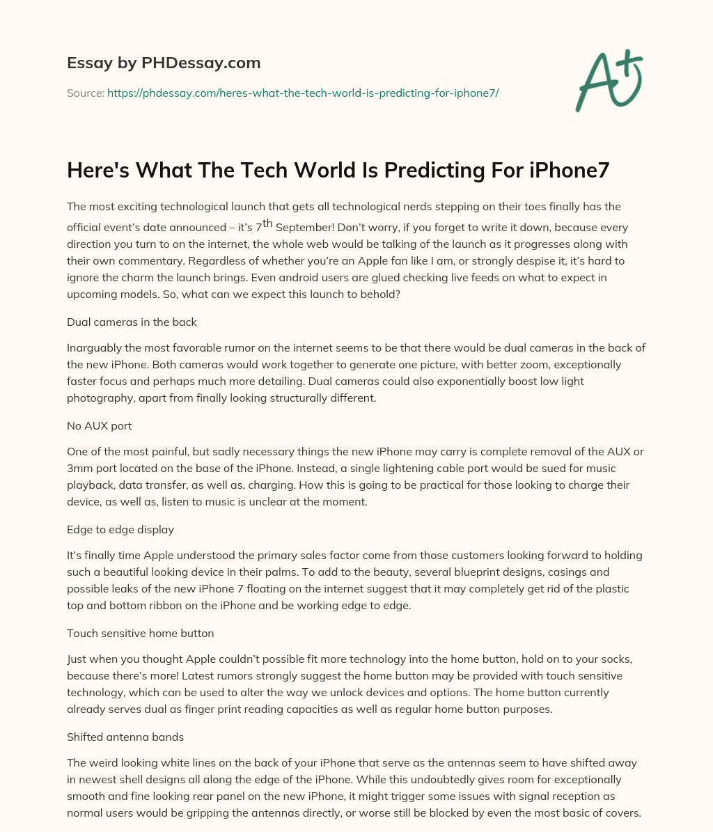 Order custom essay Here’s What The Tech World Is Predicting For iPhone7 with free plagiarism report