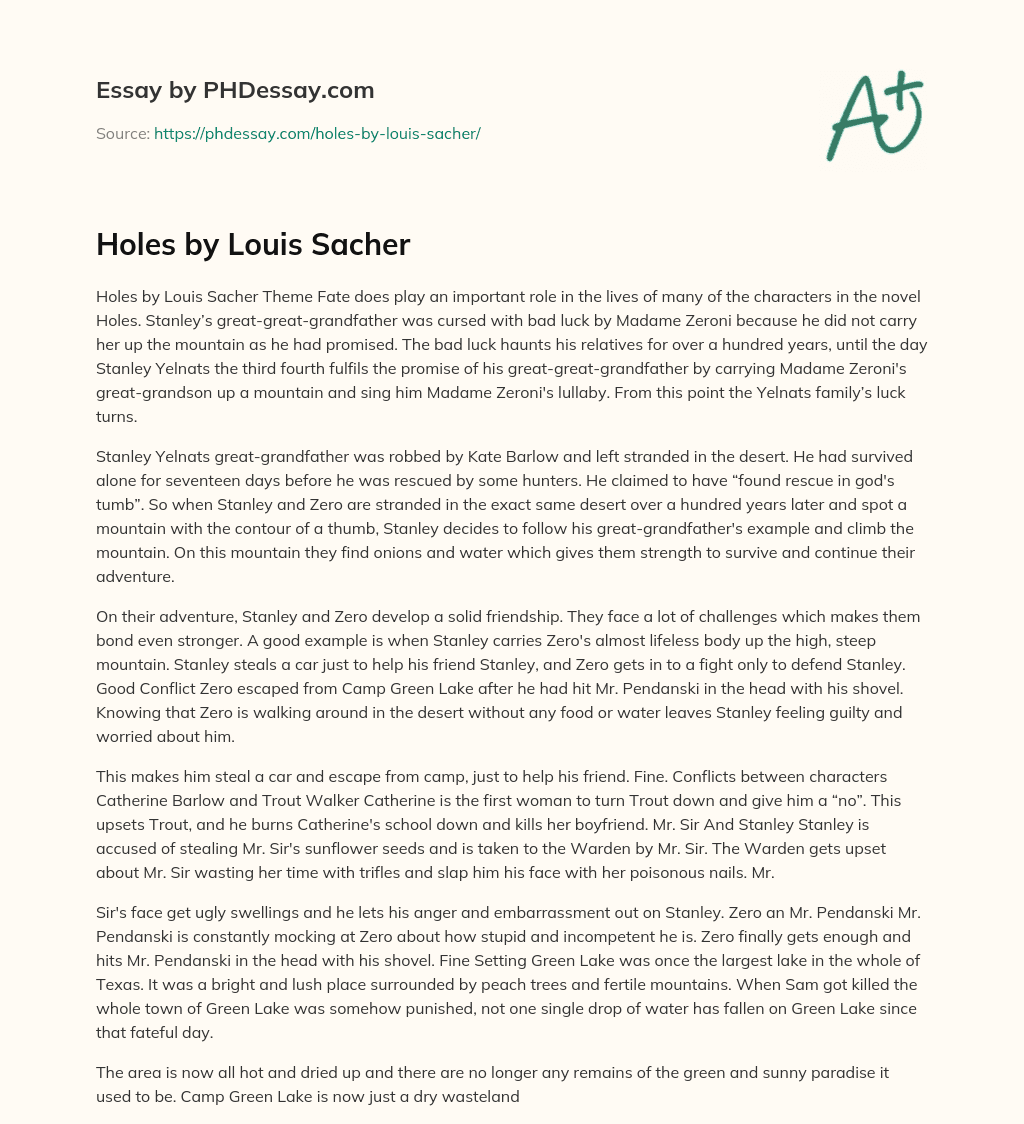 Order custom essay Holes by Louis Sacher with free plagiarism report