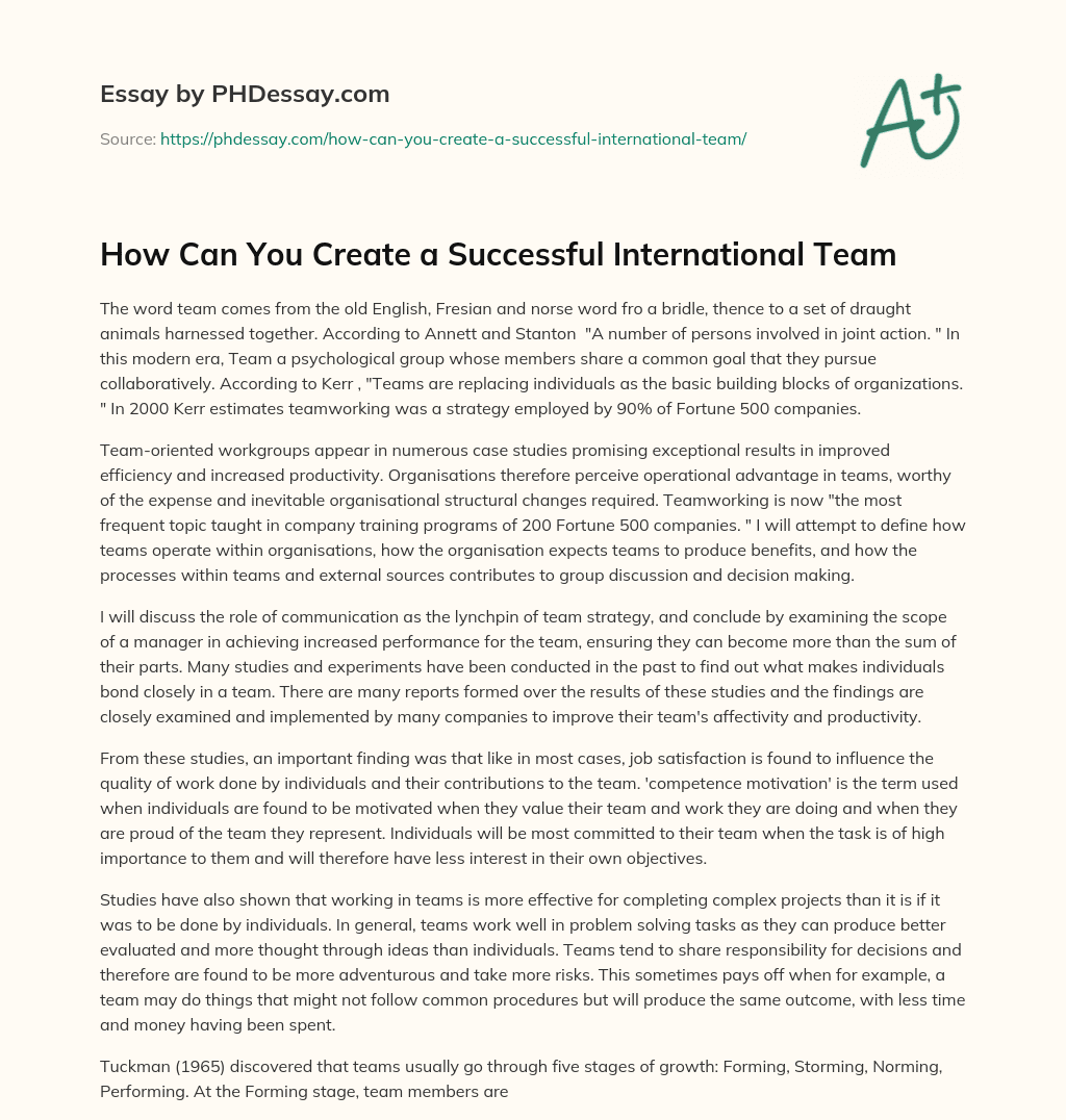 How Can You Create a Successful International Team. (2018, Apr 25). Retrieved from https://phdessay.com/how-can-you-create-a-successful-international-team/