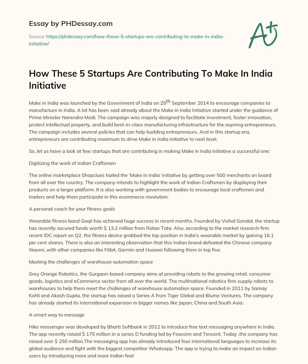 Order custom essay How These 5 Startups Are Contributing To Make In India Initiative with free plagiarism report