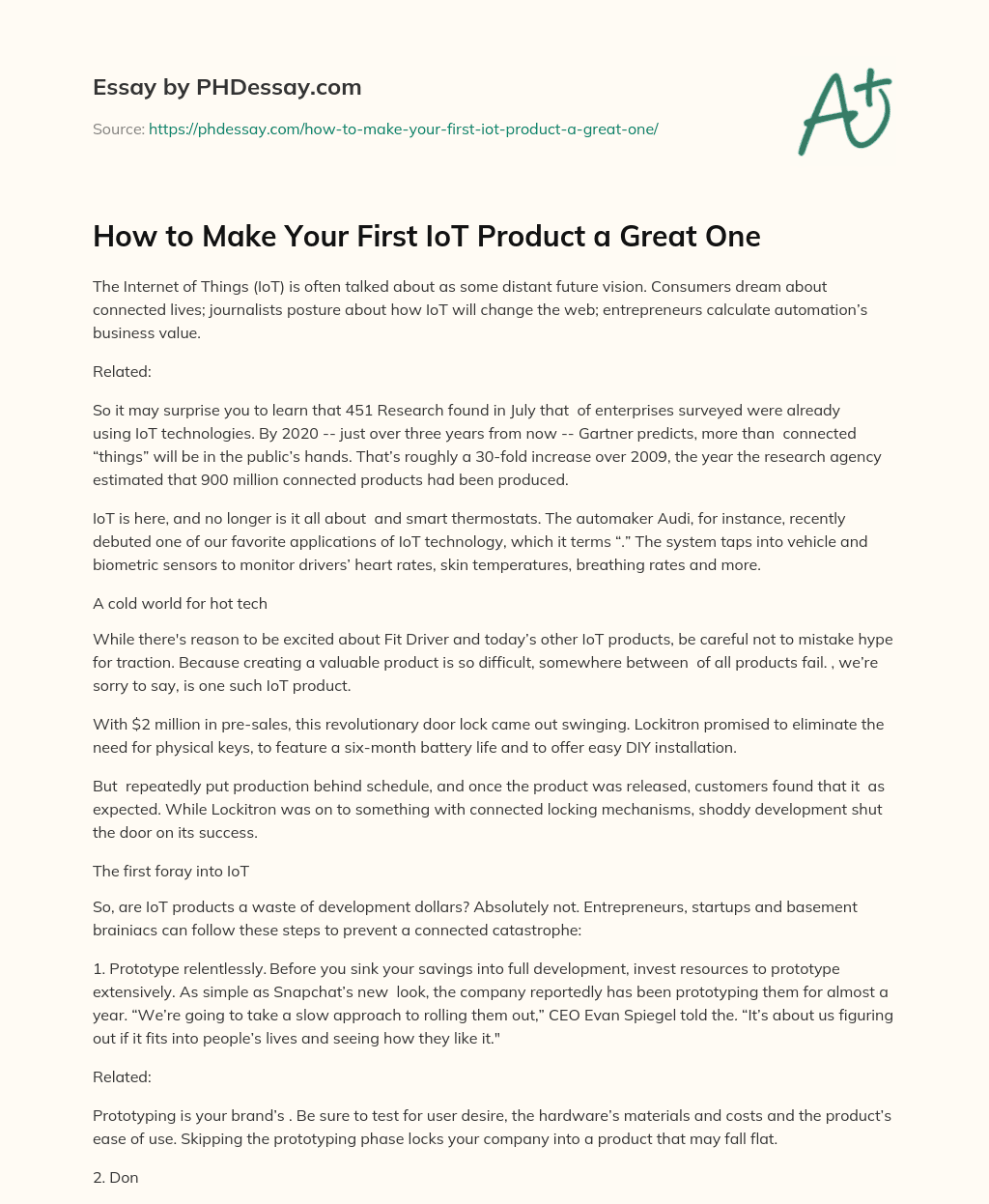 How to Make Your First IoT Product a Great One. (2018, May 01). Retrieved from https://phdessay.com/how-to-make-your-first-iot-product-a-great-one/