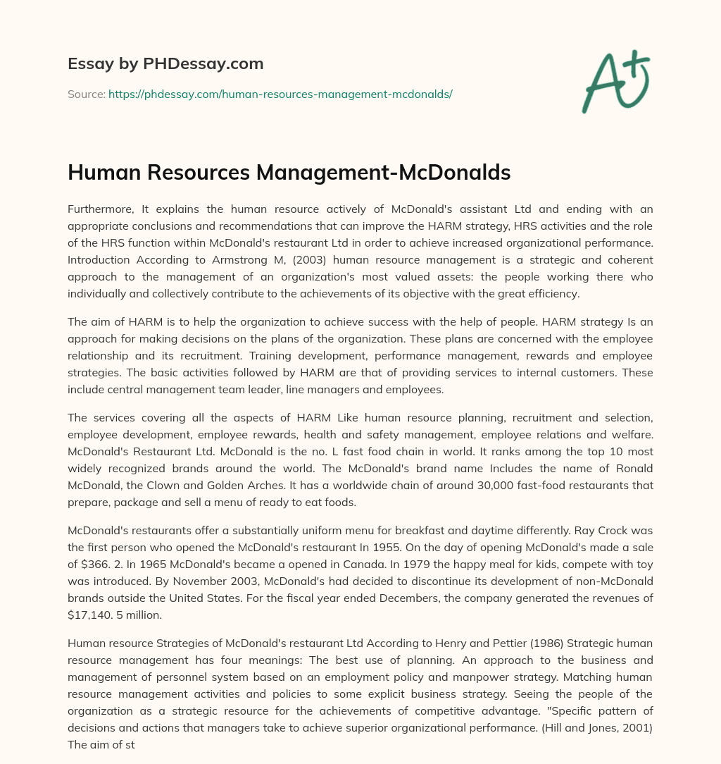 Human Resources Management-McDonalds. (2018, Mar 23). Retrieved from https://phdessay.com/human-resources-management-mcdonalds/