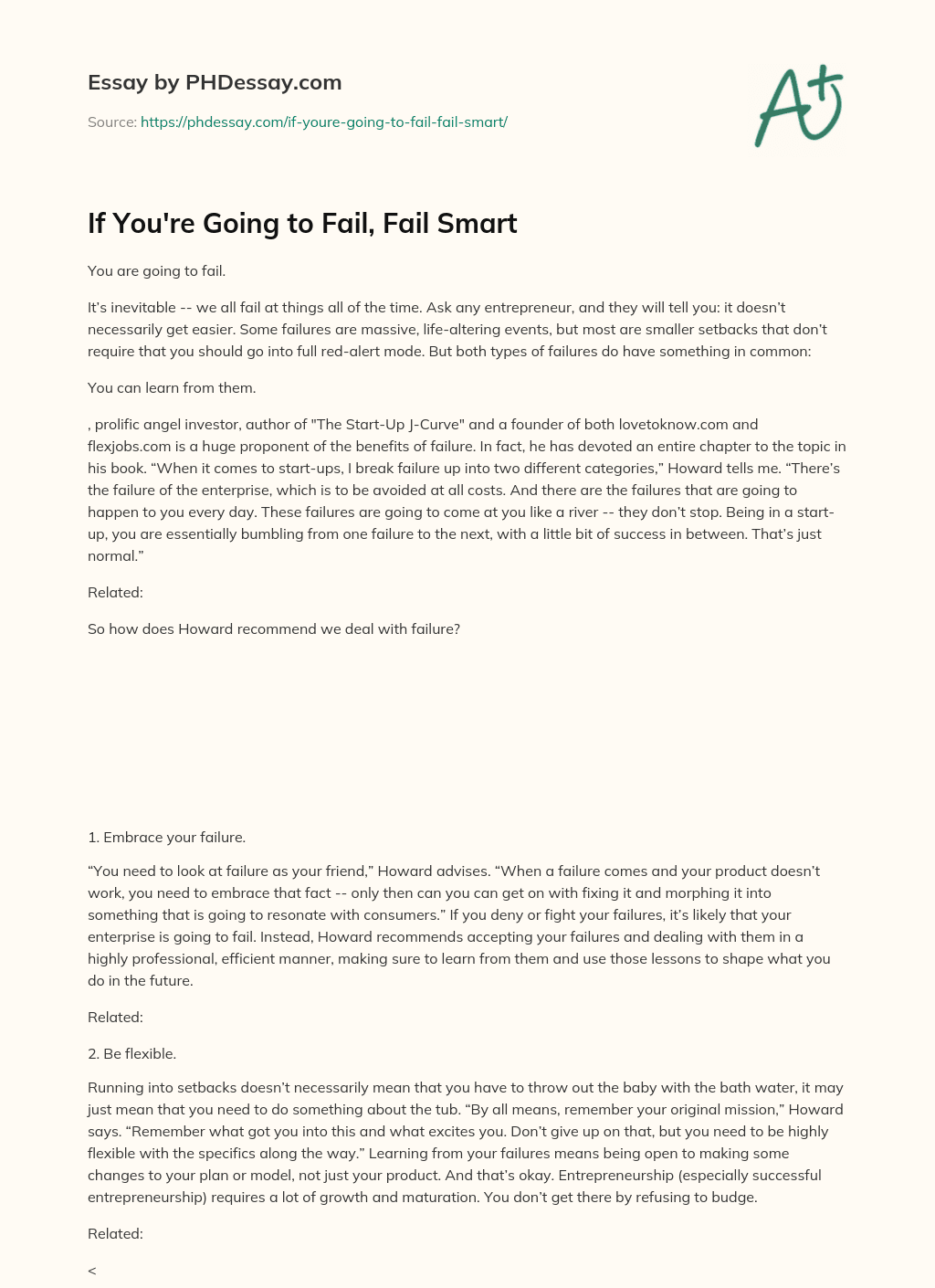 Order custom essay If You’re Going to Fail, Fail Smart with free plagiarism report