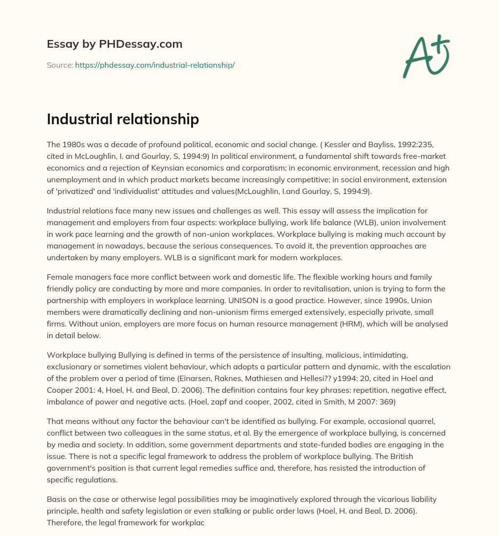 Industrial relationship. (2018, Aug 18). Retrieved from https://phdessay.com/industrial-relationship/