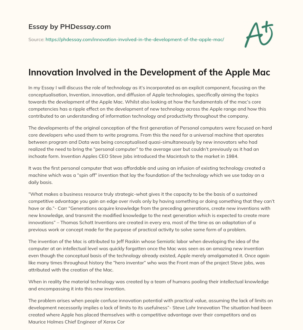 Innovation Involved in the Development of the Apple Mac. (2016, Aug 18). Retrieved from https://phdessay.com/innovation-involved-in-the-development-of-the-apple-mac/