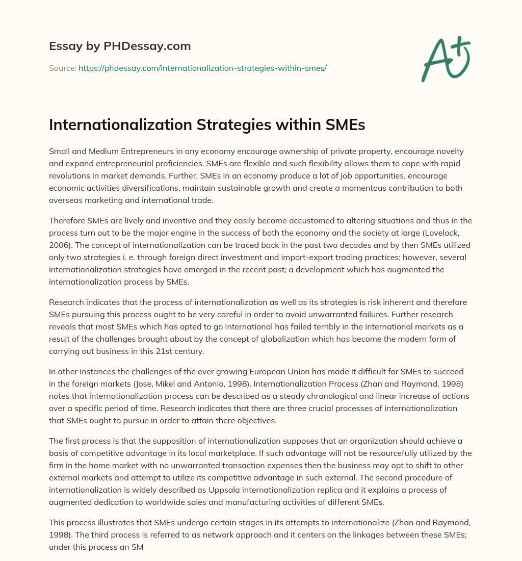 Order custom essay Internationalization Strategies within SMEs with free plagiarism report