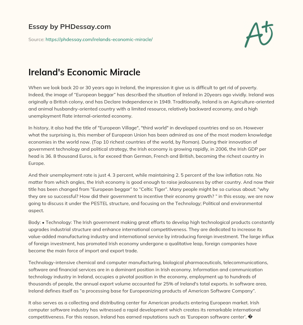 Ireland’s Economic Miracle. (2018, Aug 21). Retrieved from https://phdessay.com/irelands-economic-miracle/