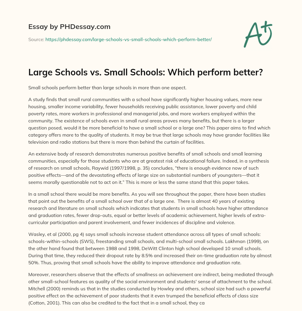 Order custom essay Large Schools vs. Small Schools: Which perform better? with free plagiarism report