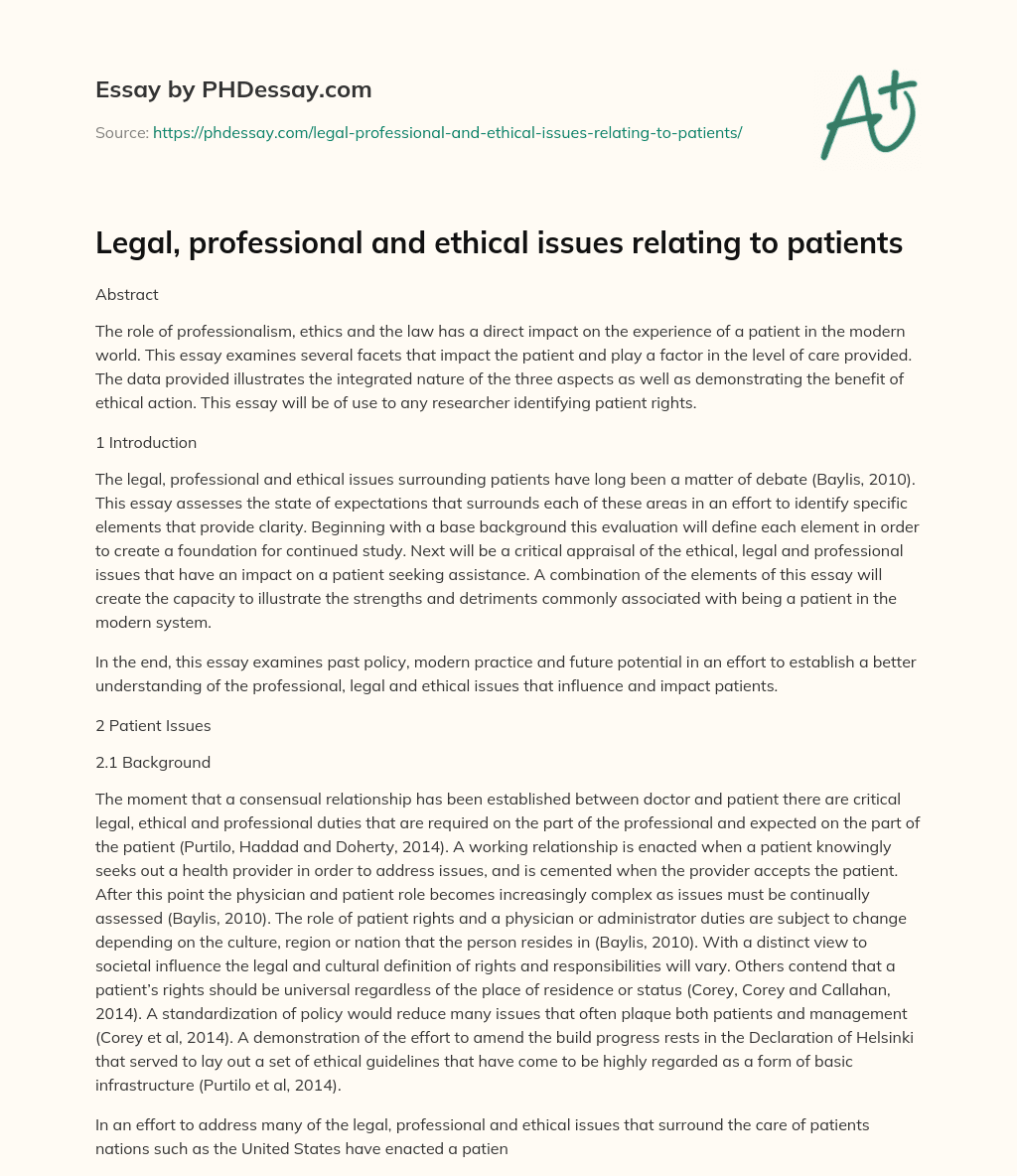 Order custom essay Legal, professional and ethical issues relating to patients with free plagiarism report