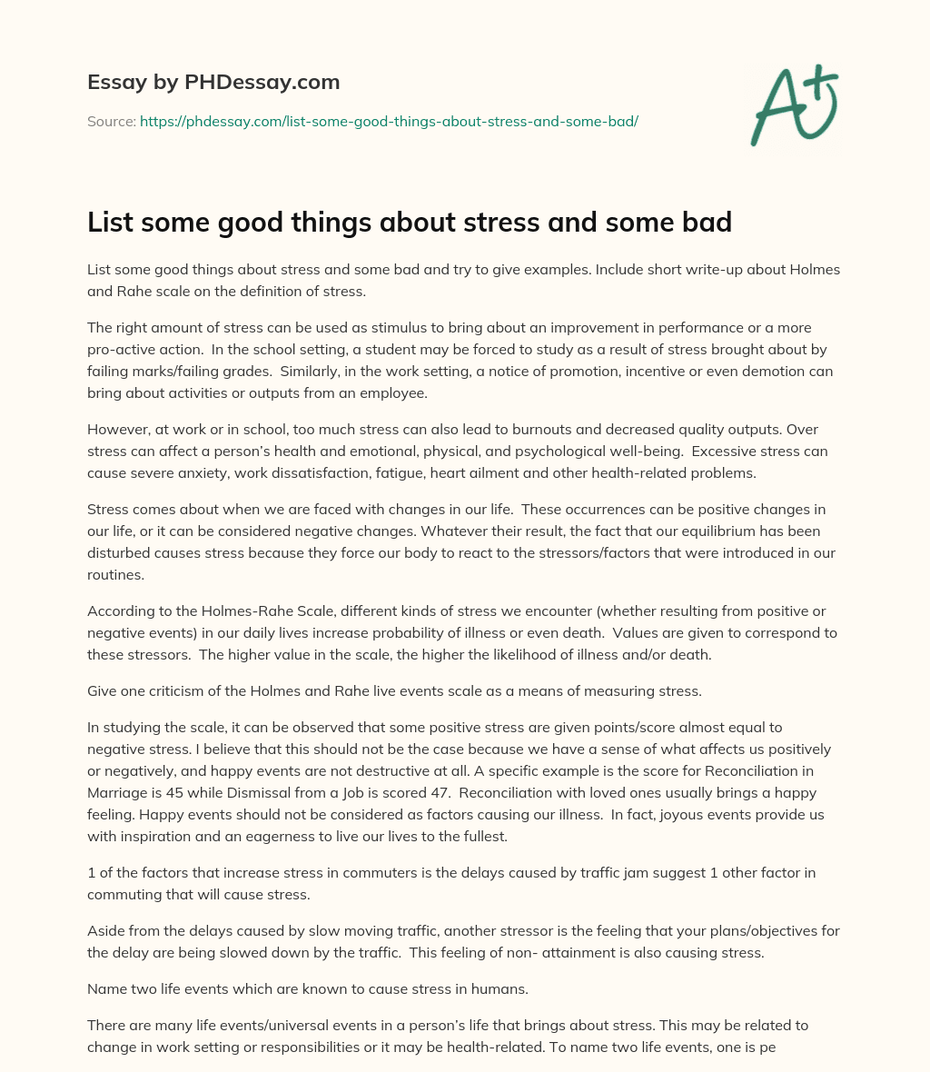 Order custom essay List some good things about stress and some bad with free plagiarism report