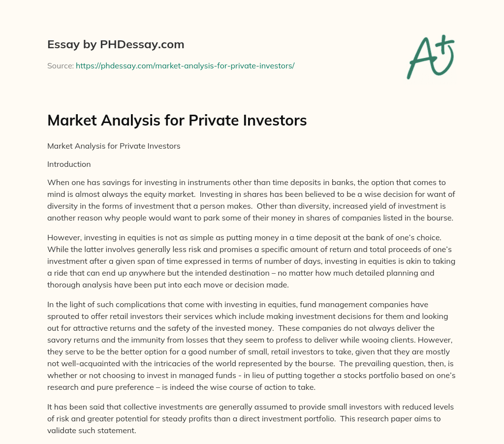 Order custom essay Market Analysis for Private Investors with free plagiarism report