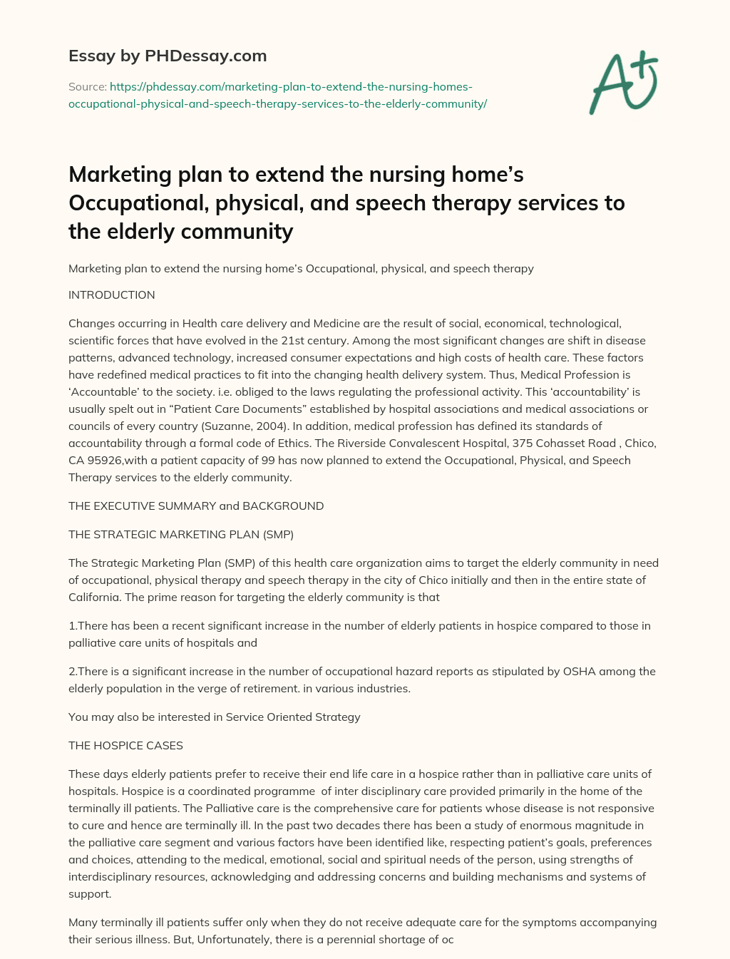 Marketing plan to extend the nursing home’s Occupational, physical, and speech therapy