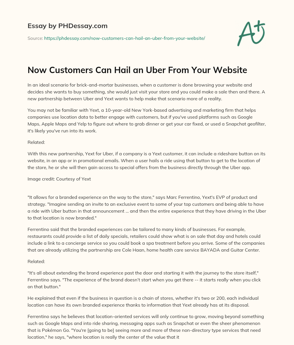 Order custom essay Now Customers Can Hail an Uber From Your Website with free plagiarism report