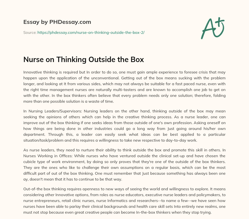 Order custom essay Nurse on Thinking Outside the Box with free plagiarism report