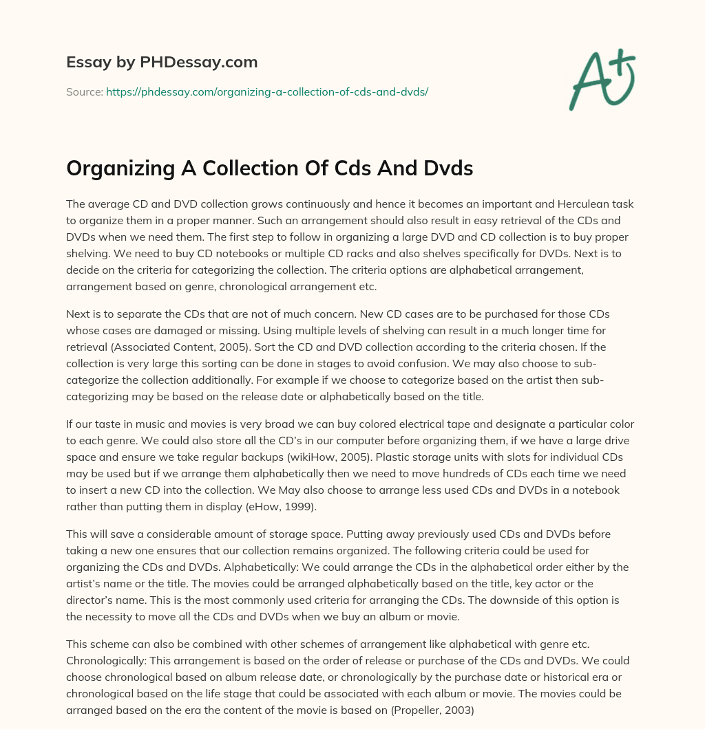 Order custom essay Organizing A Collection Of Cds And Dvds with free plagiarism report
