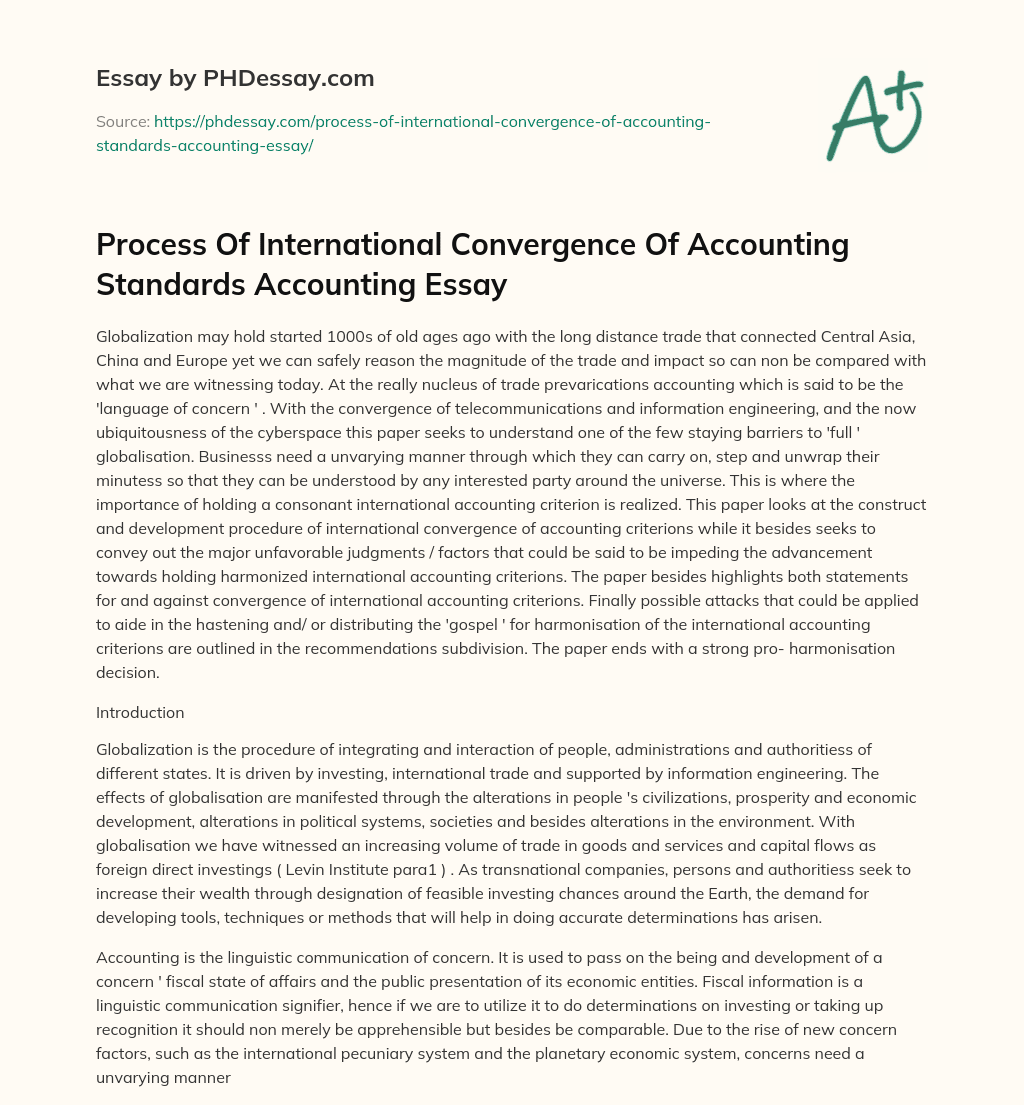 Order custom essay Process Of International Convergence Of Accounting Standards Accounting Essay with free plagiarism report