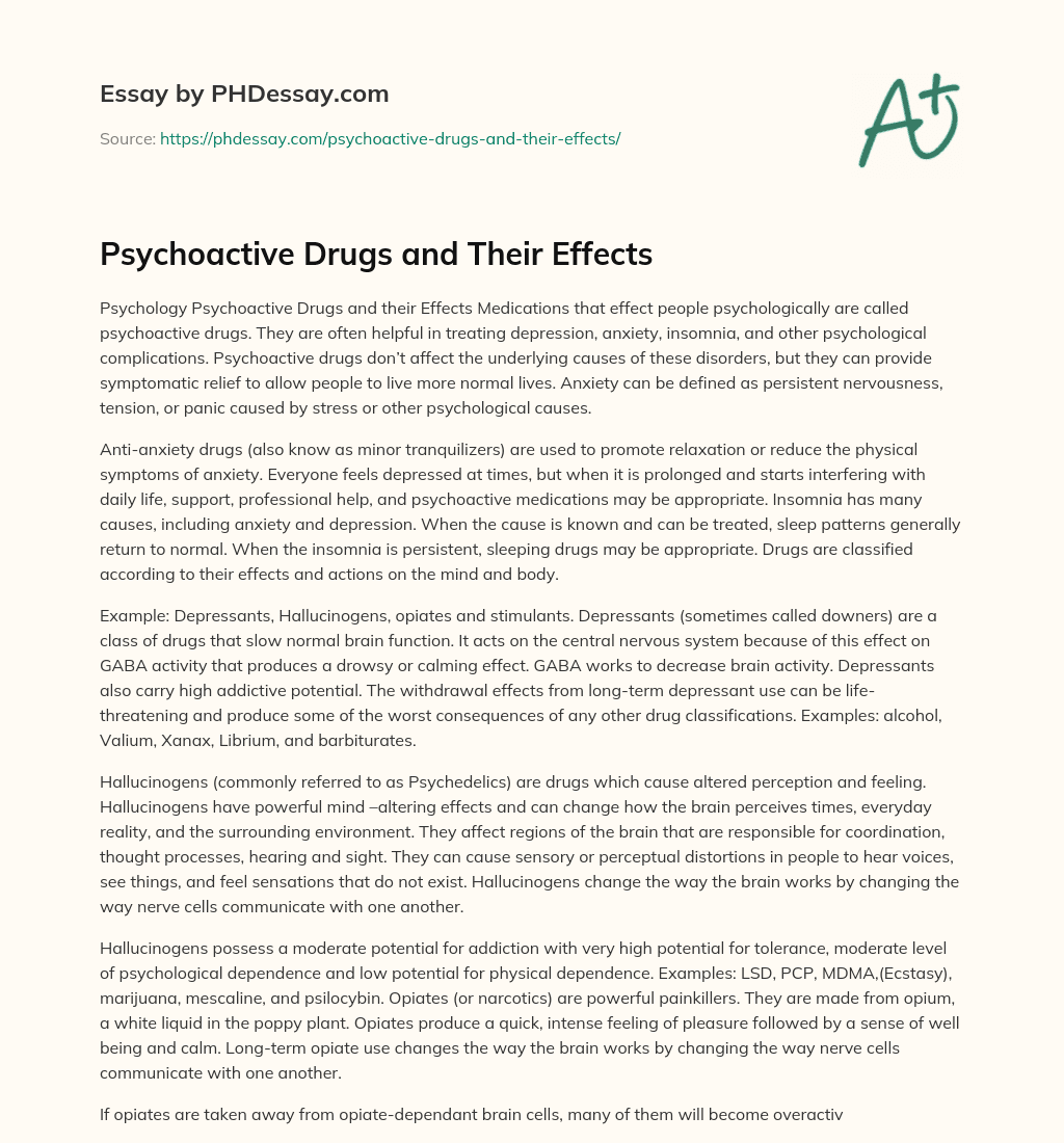Psychoactive Drugs and Their Effects. (2018, Feb 10). Retrieved from https://phdessay.com/psychoactive-drugs-and-their-effects/