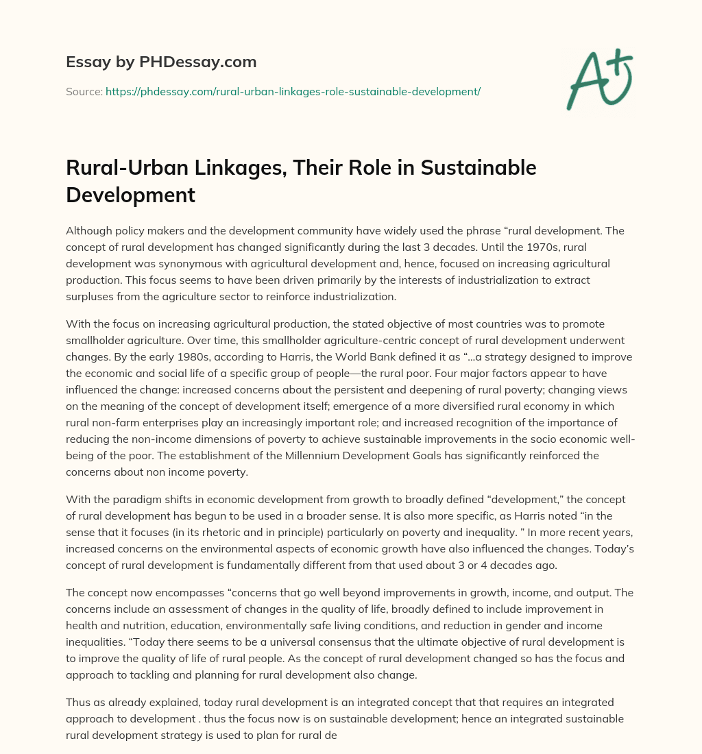 Order custom essay Rural-Urban Linkages, Their Role in Sustainable Development with free plagiarism report