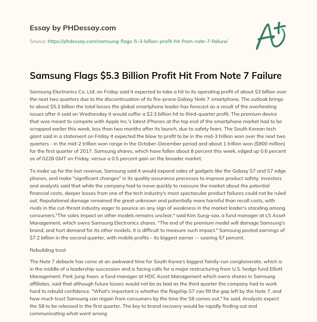 Order custom essay Samsung Flags $5.3 Billion Profit Hit From Note 7 Failure with free plagiarism report