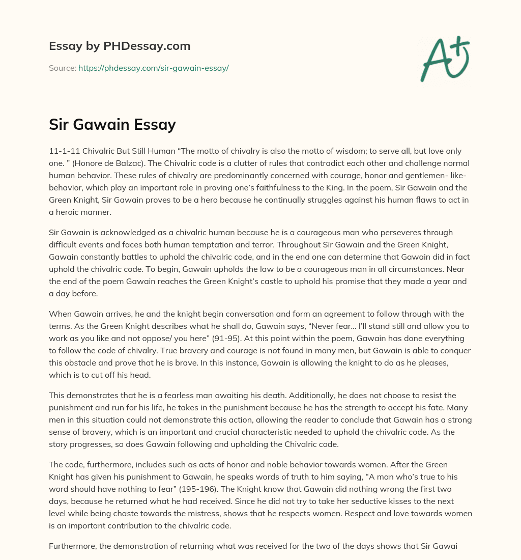 Order custom essay Sir Gawain Essay with free plagiarism report