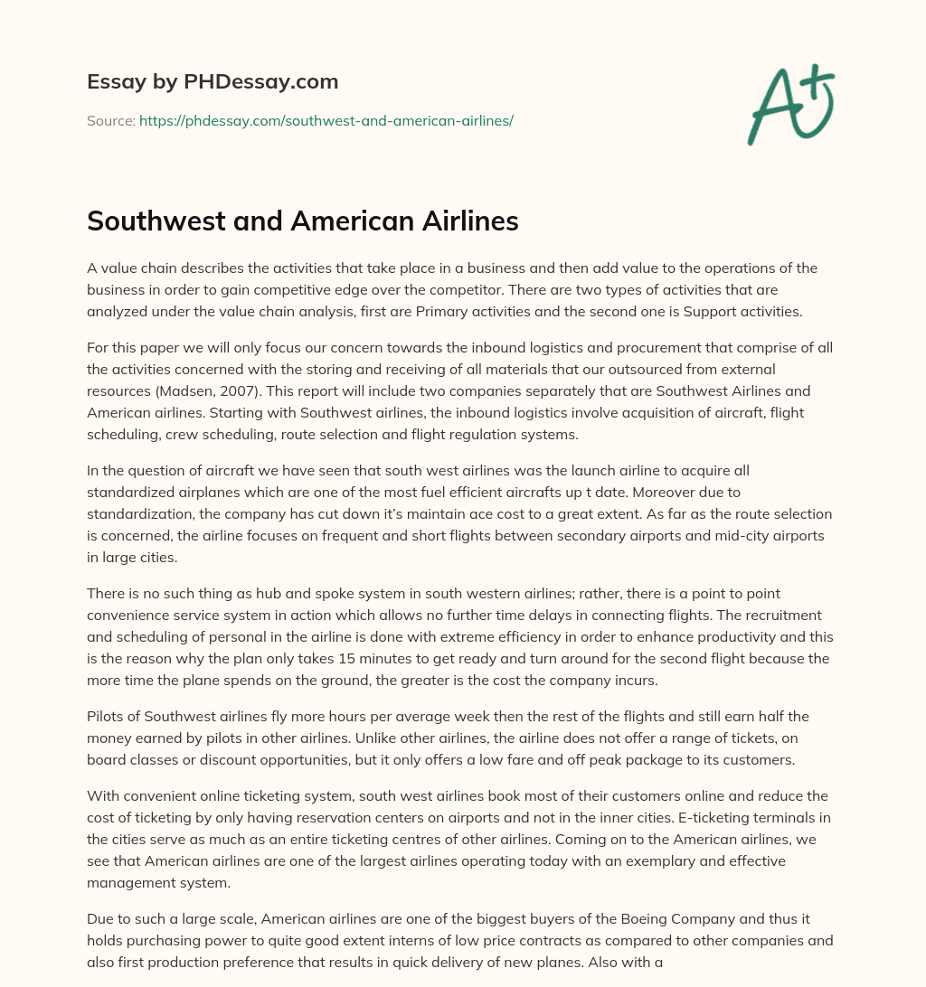 Order custom essay Southwest and American Airlines with free plagiarism report