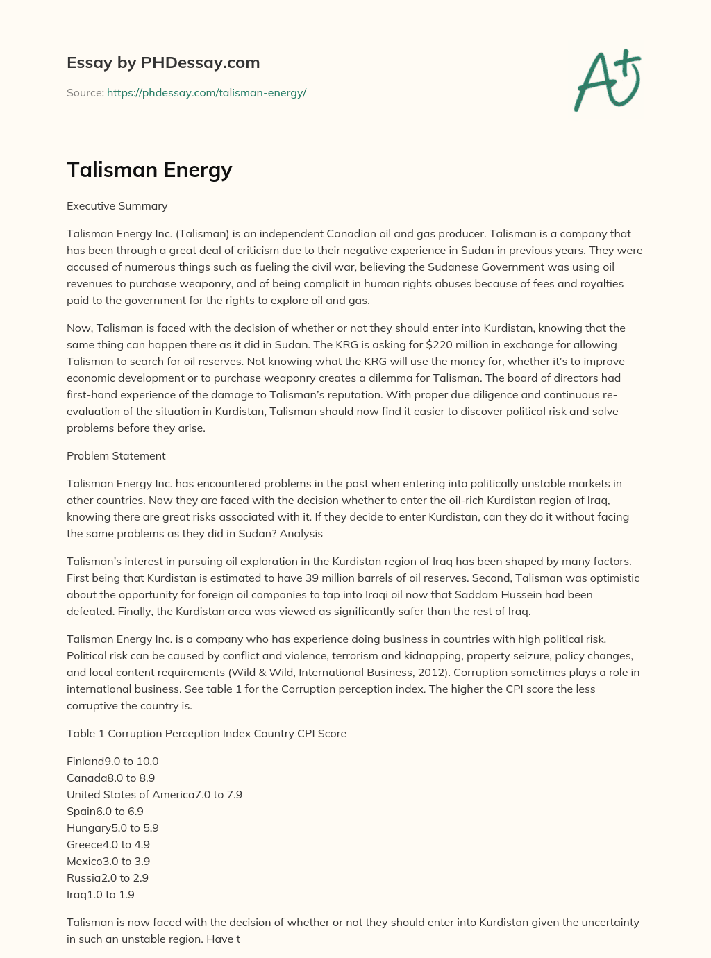 Talisman Energy. (2016, Aug 07). Retrieved from https://phdessay.com/talisman-energy/